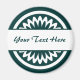 Um modelo de na moda com um modo de flor geométrico circular e uma banda branca prontas para serem personalizadas com o seu texto.