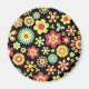 Um design floral atraente com flores estilizadas coloridas sobre fundo preto, o design também tem uma textura sutil de papel.