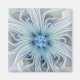 Um abstrato moderno e uma flor invulgar de fantasia de arte fractal. Tendência com cores azuis de pastel de cinza branca. Design para seu ímã decorativo e único e floral quadrado e muito mais.