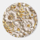 Um belo arranjo de flores estilizadas e folhas mostra cores pastéis macios com uma dica de tela metálica. Os detalhes intrincados destacam uma mistura harmoniosa de formas e texturas, criando uma composição serena e elegante.