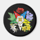 Íman bonito com o emblema OES rodeado pelas flores representativas dos pontos de estiramento.
