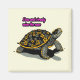 Uma ilustração estilizada de uma tartaruga, com um padrão floral vibrante de matizes amarelas e cinzas no seu invólucro, é representada numa pose andante contra um pano de fundo sereno amarelo pálido. A trabalho de arte exumenta um ambiente pacífico e caprichoso, evocando a estética das técnicas de pintura ou linocut.
