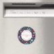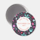 Pintura botânica moderna de aquarelas de flores aqua azuis e roxas selvagens sobre fundo escuro. Arte original de Nic Squirrell. Um belo coordenador de Imã salve o dia como um lembrete útil para seus convidados. Mude o texto para se adequar à sua celebração.