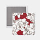Íman Flores Brancas Desenhadas à Mão em Vermelho