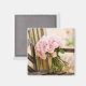 Esta incrível foto do Getty Images apresenta um buquê rosa rosa em uma bancada de madeira externa.