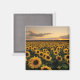 Esta incrível foto do Getty Images mostra um campo de girassol no pôr do sol.