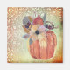 Uma elegante abóbora de aquarela e flores em um fundo de aparência antiga. Em cores de laranja de cobre, roxo de ameixa verde. Uma queda bonito, design de abóbora floral de outono.