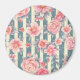 Magnet com um belo padrão, com flores bonito cor-de-rosa, sobre um padrão listrado composto por listras azuis e creme.