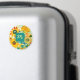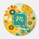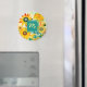Íman de flores de arte folclórica amarela e turquesa. Adicionar iniciais na área personalizada.