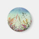 Uma bela cena de flores silvestres vibrantes e coloridas no conjunto de ventos em frente a um céu azul e verde com estrelas.
