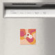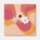 design de estilo retrógrado abstrato com flores florescentes e decoração de ondas amarelas, laranja e cor-de-rosa sobre fundo cor-de-rosa pastel