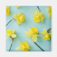 Esta incrível foto do Getty Images apresenta flores amarelas daffodil sobre um fundo azul.