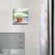 Íman bonito com uma bela ilustração de flores brancas num pote de cobre com vista para trás de um lago sereno com pinheiros.