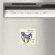 Bonito ímã floral decorativo (íris roxa sobre fundo amarelo pálido) com verso das escrituras dos romanos 12:12 "Seja alegre em esperança, paciente em aflição, fiel em oração."