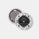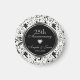 Damasco floral negro elegante sobre fundo branco e círculo prateado negro com coração prateado- 25 anos de casamento