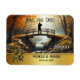 Ímã romântico de Salve a Data com uma pintura de um casal em uma ponte em uma floresta de outono. Um belo símbolo de uma ponte que atravessa para uma nova vida juntos. Um modelo de código QR é adicionado para sua conveniência e pode ser facilmente personalizado ou excluído se não for necessário.