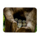 Esta incrível foto do Getty Images apresenta três jovens corujas pintadas que se reproduzem na Ásia tropical.