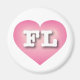 Este ímã apresenta um coração cor-de-rosa vibrante com um centro lavado branco contendo as letras maiúsculas, em negrito, branco, FL, a abreviação oficial da Flórida, o estado do sol.