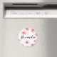 Este ímã fofo personalizado apresenta seu nome personalizado em texto de estilo manuscrito, enquadrado por flores doces de aquarela em rosa, laranja e verde. Excelente por enforcar o trabalho de arte das crianças.