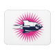 Foguete espacial retrô com uma explosão solar rosa.