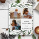 Cartão de Feriado Floral Minimalista Dourado Confetti Watercolor Confetti Green Foliage Elegante. Mande cumprimentos e desejos calorosos para seus entes queridos com este cartão de férias minimalista e moderno. Um belo quadro de folhas de cor d'água verde macia pintadas, cercadas por flocos de confete de ouro na frente. O meio apresenta três das suas fotos de família favoritas num esquema de colagem simples com a sua mensagem de saudação personalizada. Todos os textos estão pré-organizados para que você personalize fácil e rapidamente com seus próprios detalhes.