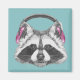 Este design apresenta um guaxinim giro vestindo fones de ouvido cor-de-rosa.