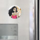 Veja a Mulher Maravilha em frente ao padrão tribal do logotipo com "Força" escrita sobre um traço de pincel pintado.