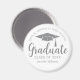 Este imã de formando prateado personalizado apresenta seu nome de segundo grau ou de faculdade para a classe de 2025. Personalize com o seu ano de graduação sob o guião manuscrito chic e o boné de formando moderno para um excelente personalizado a favor da festa de formatura.