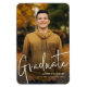 Um ímã de anúncio de graduação de roteiro moderno simples com foto de retrato de corpo inteiro com fonte manuscrita na frente com nome e detalhes da formatura. A parte de trás é magnética. Clique no botão editar para personalizar este design.