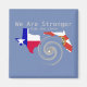 As bandeiras estaduais do Texas e da Flórida na forma de seus estados, com a espiral estilizada de um furacão representando os furacões Harvey e Irma, e a frase "Somos Mais Fortes" "do que a tempestade.