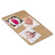 Apresentando 3 fotos instantâneas de filmagem, no estilo de uma menina, em um fundo de kraft rústico coberto por corações de amor cor-de-rosa espalhados. Personalize com suas fotos de bebês, estatísticas de nomes e natalidade.