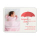 Foto personalizada do bebê com o nome e data de nascimento sob um guarda-chuva vermelho. Design moderno, vermelho e limpo para pais cuja luz do sol veio em um dia chuvoso. Guarde um como lembrança. Isso trará boas memórias quando a jovem menina se tornar uma adolescente. E mais tarde, quando a adolescente estiver prestes a deixar o ninho, traga-o novamente. Compartilhe algumas dessas memórias com ela. Diga o quanto você se orgulha.