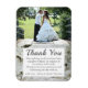 Este cartão de imã de fotos de casamento rústico e moderno é uma forma excelente de obrigado para sua família e amigos por celebrar o grande dia com você Adicione sua foto de casamento ao cartão. Use o botão PERSONALIZAR para redimensionar ou mover a foto para ajustado da placa. Personalize o nome e os detalhes do cartão de acordo com as suas necessidades. Este design apresenta um fundo do latido da árvore de pássaros.