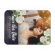 Casamento Salve os Modelos de Data Magnets - Flores de Hydrangea Brancas Elegantes e Luzes de String no Fundo de Linhagens Florais Azuis do Marinho Vintage. Um Design perfeito para o seu grande dia. Todo estilo de texto, cores, tamanhos podem ser modificados para ajustado das suas necessidades!