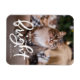 Brilhe o dia de sua amada enviando nosso ímã de fotos de feriado Meowy e Bright. O ímã de férias exibe a foto vertical do seu gato com "Meowy + Bright" em uma camada de script branca e em negrito. Personalize a frente do ímã de fotos de gato, adicionando seu nome.