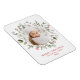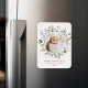 Íman de férias elegante com sua foto rodeada por groselhas de cor vermelha, groselhas de neve, folhas de eucalipto e folhagem verde de sábio. Personalize o ímã fotográfico de Natal com uma saudação personalizada, o seu nome familiar e o ano em letras vermelhas.