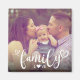 Um doce Magneta fotográfico com uma bela fonte de escrita cardíaca em branco sobre uma foto com o texto "Amor à Família". Você pode alterar a foto no menu personalizar. Uma maneira adorável de ser lembrada do conforto e calor da família.