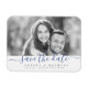Script moderno "salve a data" em cor azul marinho, com foto de casal, simples e elegante. imã salve a data de excelente para casamento moderno e outros eventos. Selecione "Clique para personalizar mais" na seção "Personalizar este modelo" para alterar a cor do script para corresponder à sua foto e ajustar a posição da foto. Ver todas as peças correspondentes na coleção