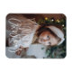 Um magnata de fotos de feriado com "Feliz Natal", apresentado na parte inferior do design, em um roteiro branco escrito à mão. Personalize o ímã de Natal com sua foto vertical e seu nome de família.