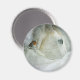 Um imã com uma fotografia serena apresentando um belo cavalo branco com um pequeno pássaro descansando no pescoço. Uma queda mágica de neve no inverno dá à imagem uma qualidade mística maravilhosa.