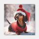 Foto de um prato de Natal bonito, vestindo um casaco vermelho, sentado na neve. IA gerada. Você pode facilmente trocar a foto com uma foto do seu próprio animal de estimação. Este é o presente perfeito para qualquer pessoa que ama o cão!