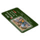 O design de Imagem do Cartão de Natal apresenta a sua fotografia no canto superior esquerdo contra um fundo verde profundo. Foto formada por uma adorável borda verde e branca. O título personalizável diz, "Feliz Natal" em letras brancas. Imagem de um Papai Noel equilibrada no topo do "C". A redação abaixo diz: "Do (Nome da Família). Uma imagem de presentes de Natal é ilustrada abaixo. Ao dar ao design um toque pessoal, as "Assinaturas" dos membros da família são mostradas abaixo em uma fonte encantadora e cursiva.