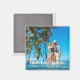 Obrigado de casamento você favorece ímãs para seu casamento na praia, personalizado com sua foto, nomes e data de casamento. Design de madeira de praia azul moderna com "obrigado você" em uma letra branca manuscrita.