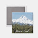 Magneta decorativa, quadrada com uma imagem cênica da joia de Oregon, Monte Hood, junto com pomares de fruta florescentes nos vales abaixo. Faz um viagem de souvenir excelente!