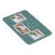 Sentimentos alegres instantâneos de fotos. Recursos, 3 fotos enquadradas com sotaques em fita washi estilo de álbum, duas linhas de texto de modelo para sua mensagem, nomes e ano com detalhes cardíacos em branco sobre fundo azul-mar.