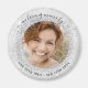 Um simples e elegante imã de fotos memoriais. Um fundo metálico prateado falsa, uma armação branca, brilhos falsos. Personalize e adicione uma foto e detalhes. Texto preto.