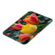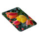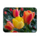 Tulipas amarelas e vermelhas do jardim do meu vizinho. Você pode criar sua própria lembrança de ímã fotográfico substituindo minha imagem de flores por sua própria foto digital. Crie uma boa lembrança de umas férias de família.