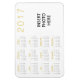 Precisa de uma única ideia personalizada para fazer o Natal especial? Esses ímãs de calendário fazem os stuffers de estocagem de excelentes para adultos. Adicione sua própria foto a este ímã de calendário de 2017. Mantenha a sua área de trabalho ou refrigerador com este calendário de 2017 com uma escala branca nítida, em conjunto com o mês de cor rico dourado, as iniciais da semana e as etiquetas do ano de "2017", juntamente com a coordenação dos dias de calendário de cinzas escuras! Este calendário é excelente para casa e escritório. Decorre seu espaço com um sofisticado calendário funcional 2017 e tenha um excelente ano novo!