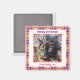 Foto Personalizada Feliz Natal Gato Gatinho Gatinho Gatinho Gatinho Magnets. Uma imã de geladeira de fotos quadradas para comemorar seu animal de estimação no Natal. Substitua a foto pelo seu próprio bebê de pele; ou de você e seu animal de estimação. Adicione sua própria mensagem ou saudação usando o botão Personalizar. Um design de padrão geométrico maximalista e feliz para o Natal. Uma mãe de gato ou pai de gato adorará ser celebrada com este brilhante ouro amarelo, roxo festivo e feliz ímã de geladeira vermelho-padrão-rosa, com uma foto de seus próprios gatos ou gatinhos. Um pensamento moderno sobre decorações tradicionais e também um cavaleiro amigável. Um presente magnético amigável para a cozinha e/ou escritório doméstico. Tenha um Natal festivo e Feliz ano novo.