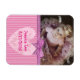 Magneta personalizada de fotos para bebês com riscas rosa e coração. Basta adicionar a foto e o nome do seu bebê na área personalizada.